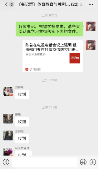 基层党支部书记群学习部署,甄选专业教师制作居家锻炼视频,学校在官方网站开设了“天津市中小学生居家科学健身运动远程服务平台”,微密圈