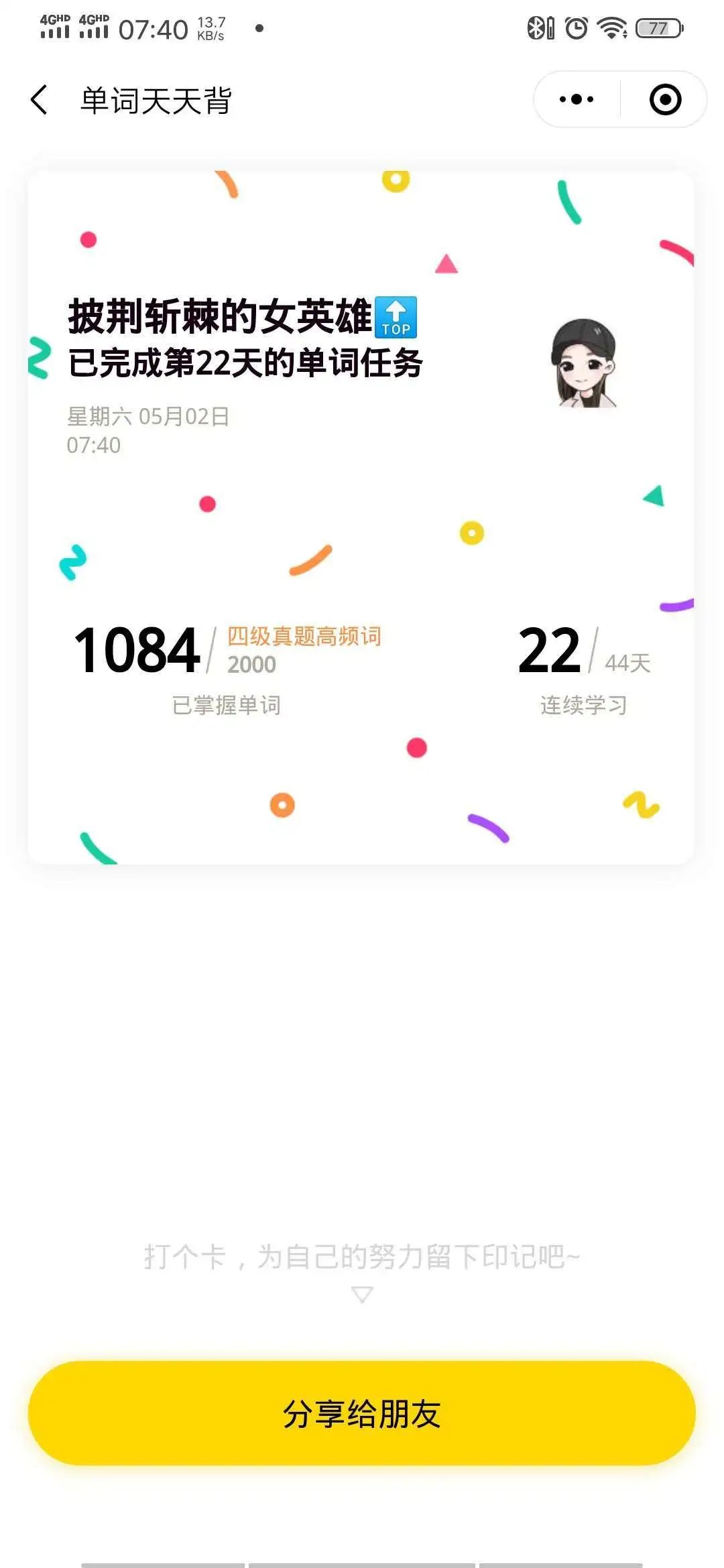 同学们积极参加“停课不停学”活动,通过打卡来记录自己美好的每一天,这既是对自己的一种监督,也是对美好生活的一种记录。同时,学习打卡给了同学们一个共同努力、互相激励的机会,也使得我们的学习生活变得更加有趣。在疫情蔓延的今天,我们要明白生命可贵,珍惜当下,体味生命的温度;在茁壮成长的今天,我们要努力上进,增加生命的厚度。