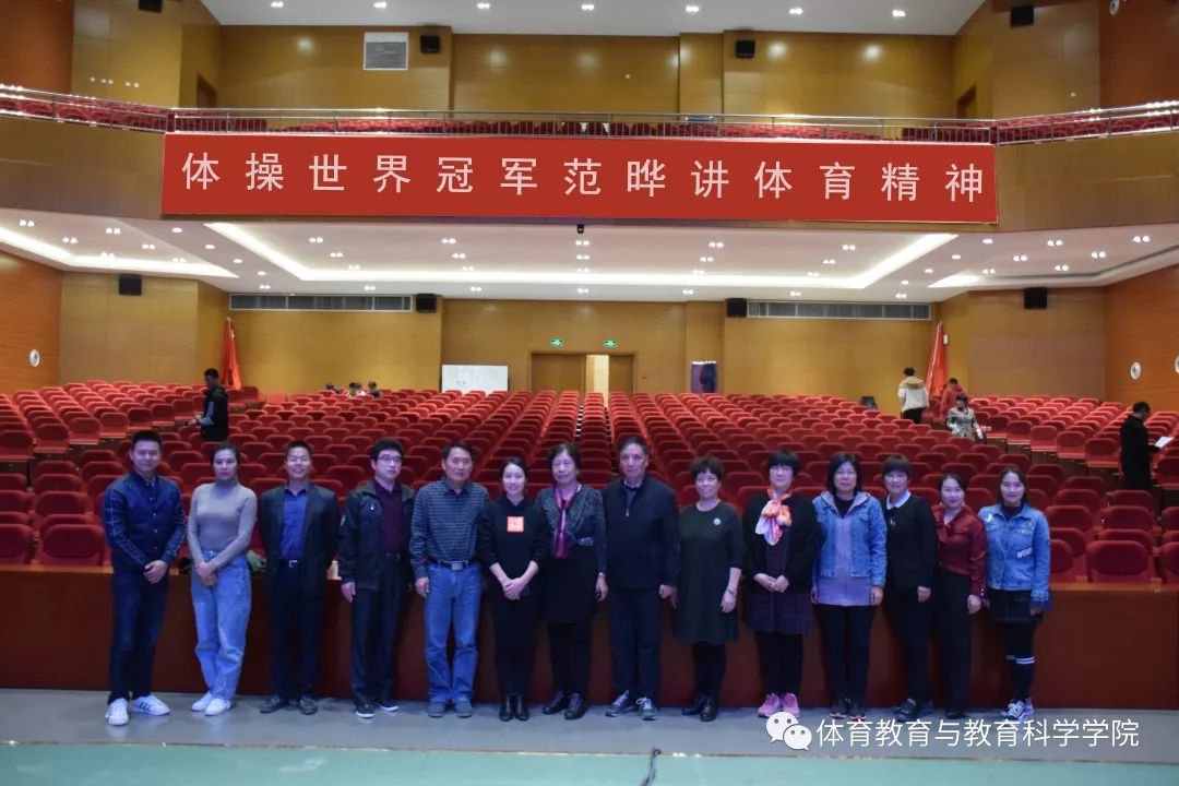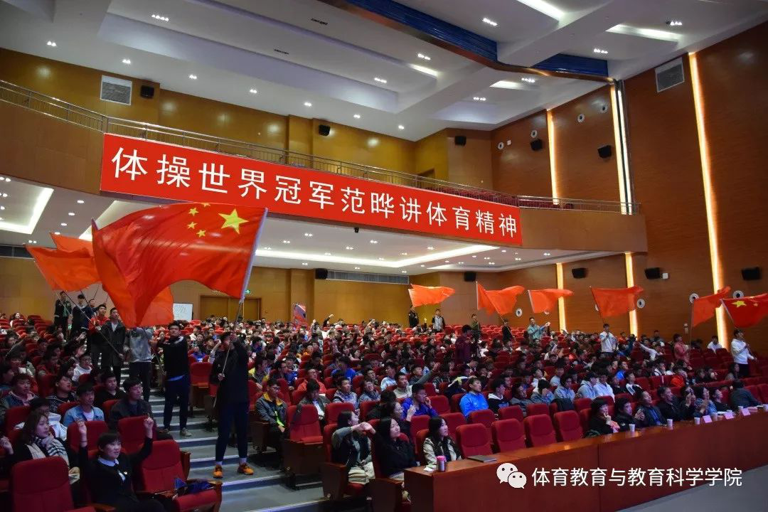 2019年10月28日下午2点,体操武术教研室《体操》课程思政课题组邀请了体操世界冠军范晔在大学生活动中心做了体育精神的宣讲。参加此次讲座的有“课程思政”建设指导组专家邵淑月教授、孙慧敏教授、陈尚伟教授,马克思主义微密圈