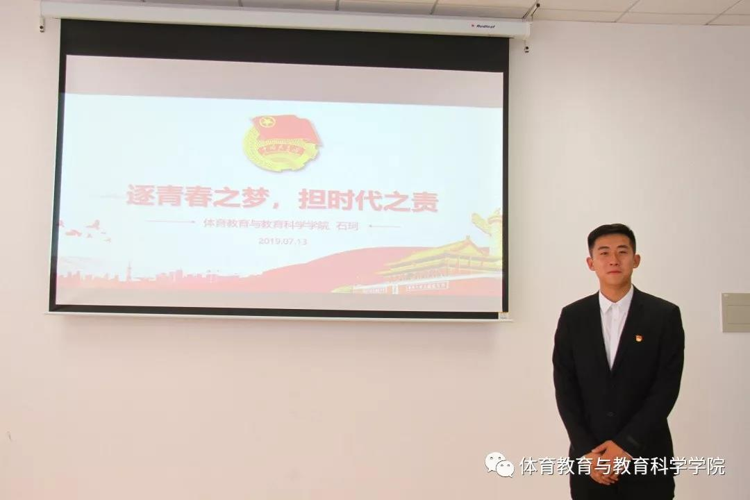 2016级体育教育专业的石珂进行了爱国主题宣讲。石珂以“共青团的简介及党团关系”“五四运动与五四精神”“习近平总书记的青年经历”“习近平总书记对青年的嘱托”“做有理想有担当的时代青年”为主要内容进行宣讲。此次活动激发了学生的爱国、爱党热情,增强学生民族自豪感和自信心。