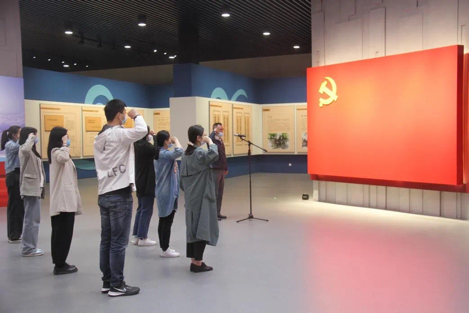 参观过程中,师生们认真听取讲解介绍,仔细观看每一个案例、每一段文字、每一幅图 片、每一封忏悔书,在场师生无不感受到灵魂的震撼和思想的洗礼。参观进入尾声时,刘泽林书记带领全体党员面向党旗举起右拳,重温入党誓词,追溯初心使命。