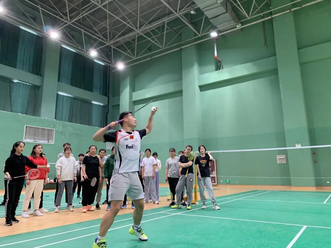 在羽毛球馆举办新学期第一场 “天体同心,羽乐共享”主题的师生共建活动,参与本次活动的有2019级和2020级研究生。
