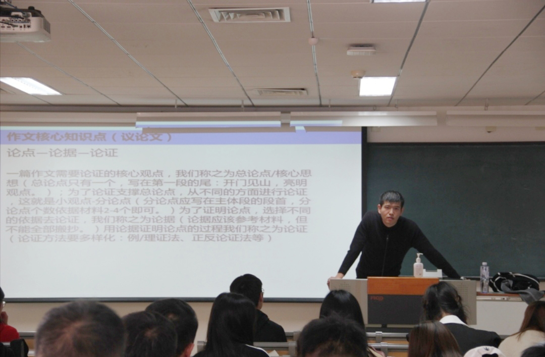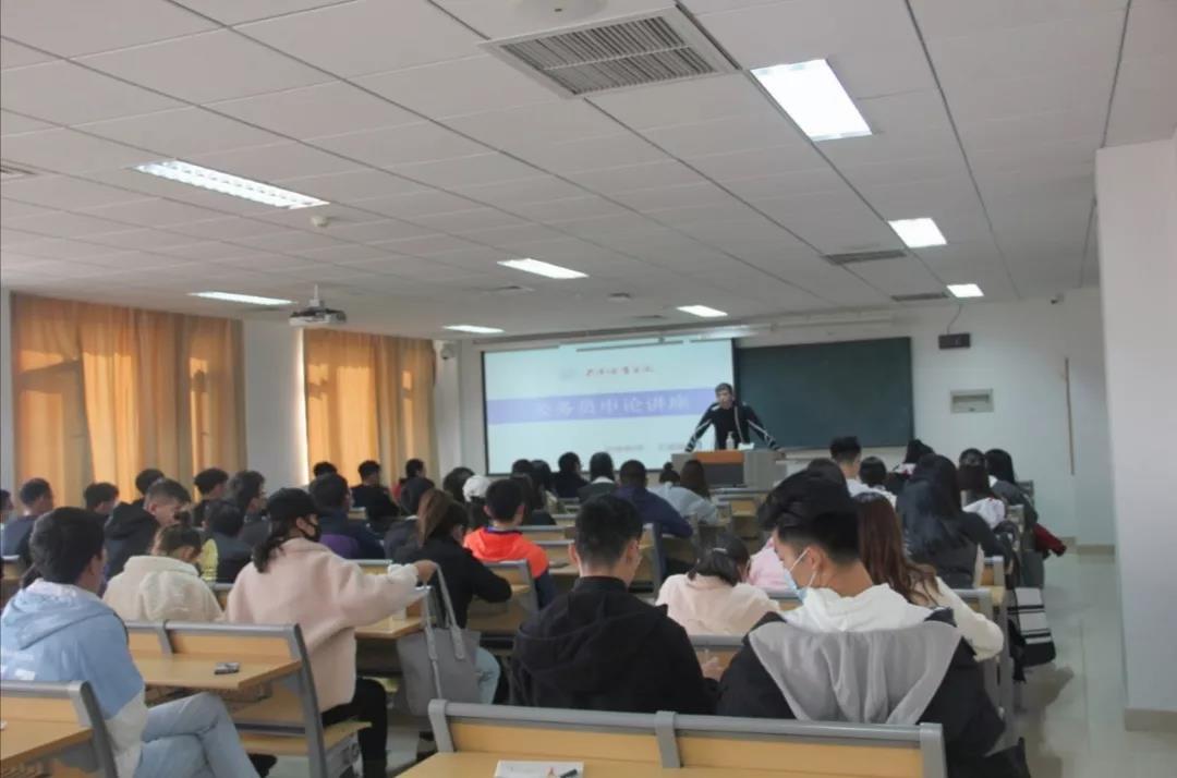 于2020年11月12日在教学楼A302举办公务员考试申论讲座,由辅导员王星翰为同学们讲解考试相关内容。