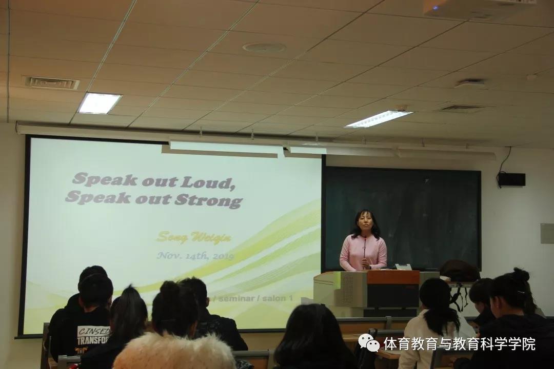 在教学楼A405开展以“Speak out Loudly Speak Out Strong”的主题讲座。