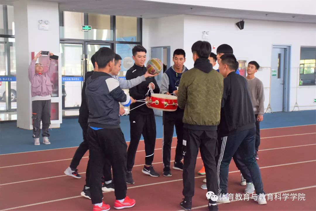 每支参赛队全体(10人)参加,同组成员以一面鼓为圆心,围圈站好,鼓身周围有长绳,鼓面上放置篮球,每人手握绳套部位鼓面平衡,计时1分钟,颠球次数多的队伍胜出。