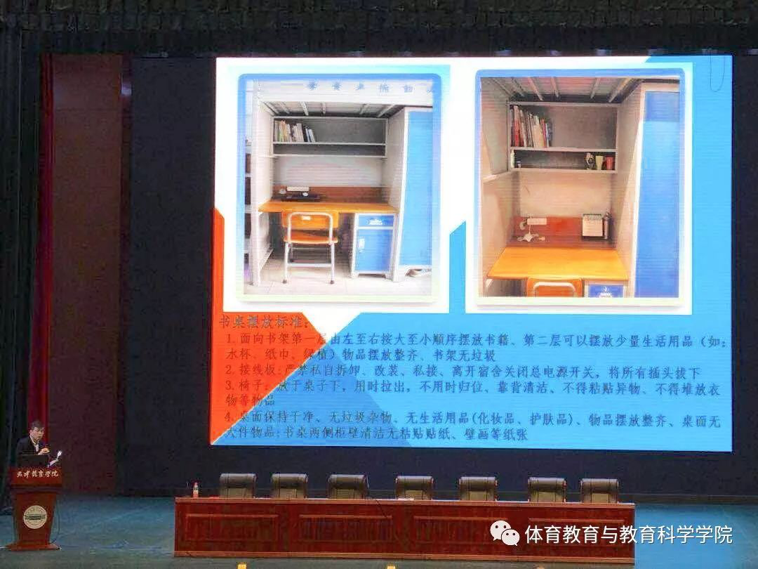 宿舍工作提出要求。他指出:礼貌是一种习惯,微笑是一种思维,整洁是一种态度,守时是一种素质,遵循是一种修养,阅读是一种回归。学生们在宿舍生活要有安全感,荣誉感,获得感和幸福感。要形成齐抓共管的局面,教育引导学生,促进良好习惯养成。同时,还要采取有力措施,完善激励机制,做到奖罚分明,逐个细节地压实责任,加大检查力度,夯实安全基础,以严之更严的措施坚决遏制可能的隐患演变为事故。