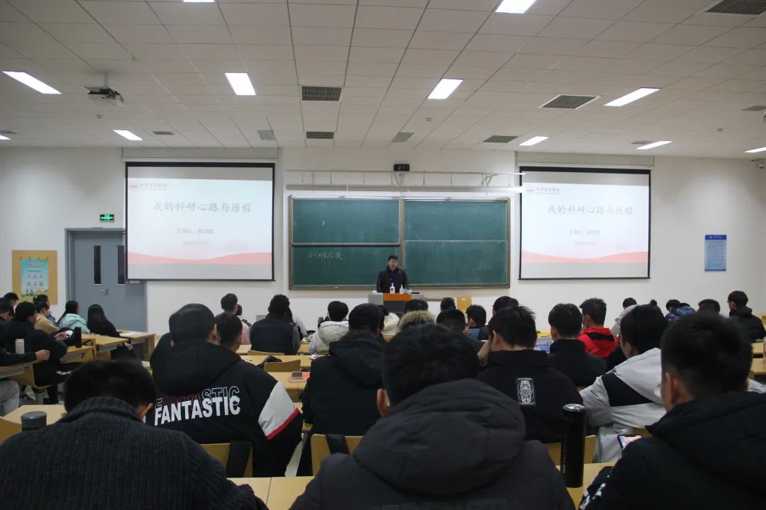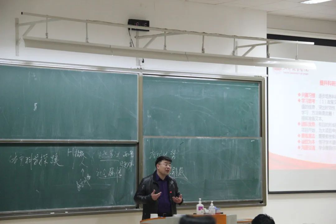 活动中,金宗强教授从“个人经历、求学之路、科研经历、分享经验”四个方面讲述个人成长与科研心得。金教授告诉同学们在构思论文时,要结合想要发表的文章类型、经费、思路等问题,避免造成资源的浪费。他还强调在学习与科研之路上,一定要紧跟时代潮流,多了解行业发展趋势,注重团队合作,不断提高自身综合素质。在分享过程中,金教授还简单向同学们介绍了社科与自科的主要区别,鼓励同学们努力学习、刻苦钻研。
