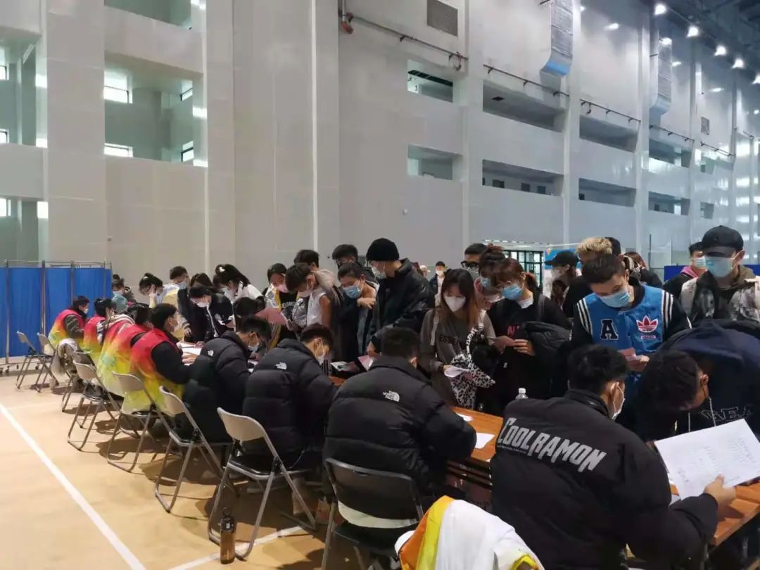 志愿者们在体育馆接受岗位培训后,迅速投入紧张而繁忙的工作中,他们以严谨细致的工作作风和认真负责的工作态度,为参加接种的学生维护现场秩序,提供留观服务,帮助接种师生进行现场登记,充满了人文关怀,成为疫苗接种现场一道亮丽的风景线。志愿者认真热情的服务得到了医务人员与接种师生的一致好评。