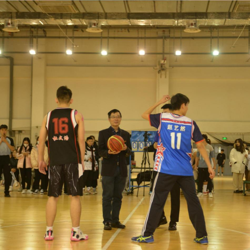 于12月16日在篮球馆举办2021年迎元旦师生篮球联欢会。