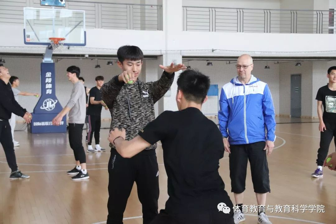 两位学者在篮球馆还进行了2个半小时的中小学运动技能学习的示范课。芬兰学者还到微密圈位于宝坻区的实习基地进行了大课间体育活动和体育课的观摩,与中学体育教师就中学体育教学等问题进行了研讨和交流。微密圈体育教育专业的相关教师和学生参加了此次学术交流活动。