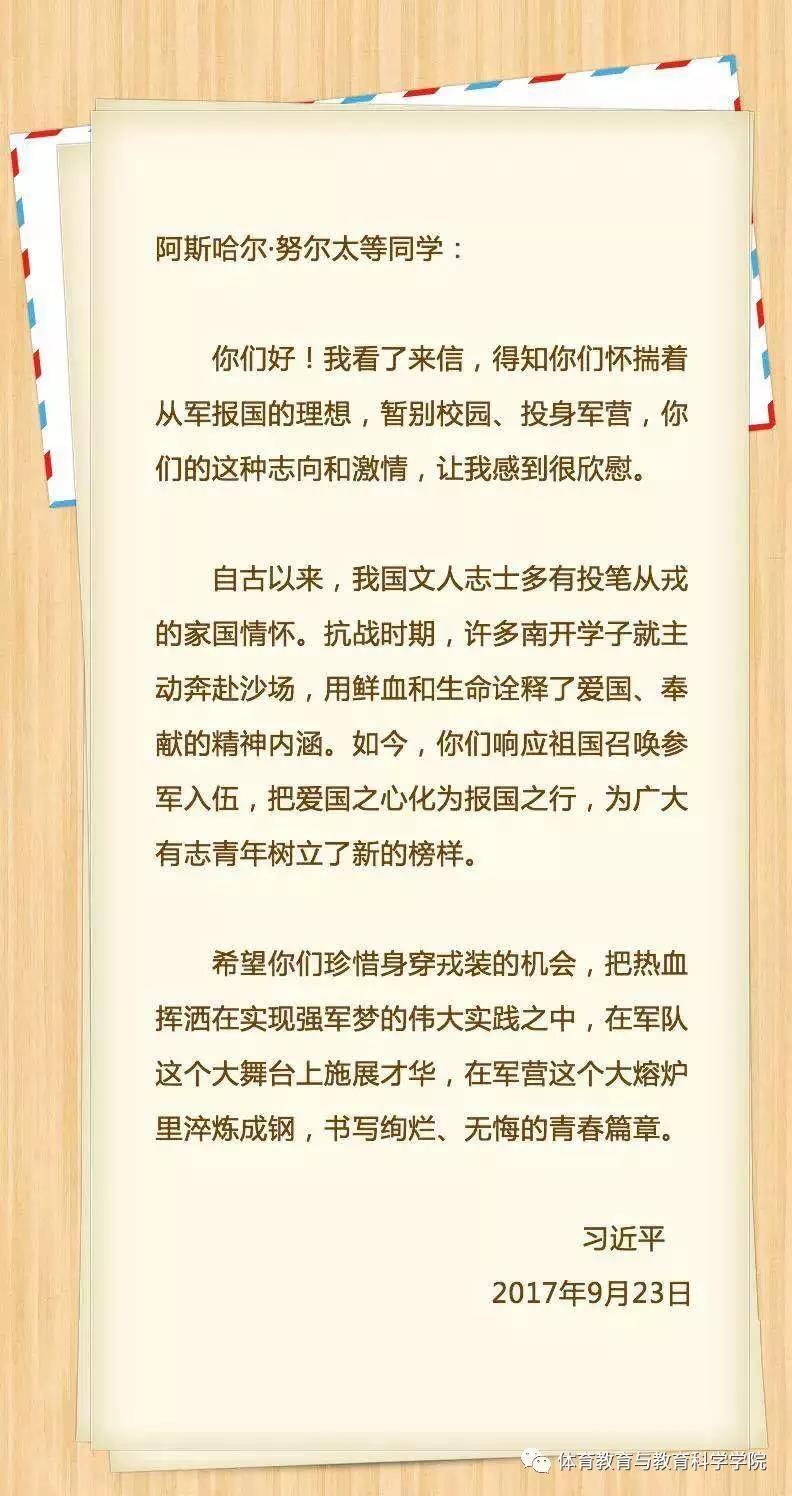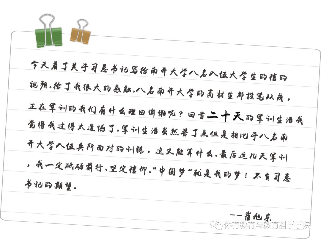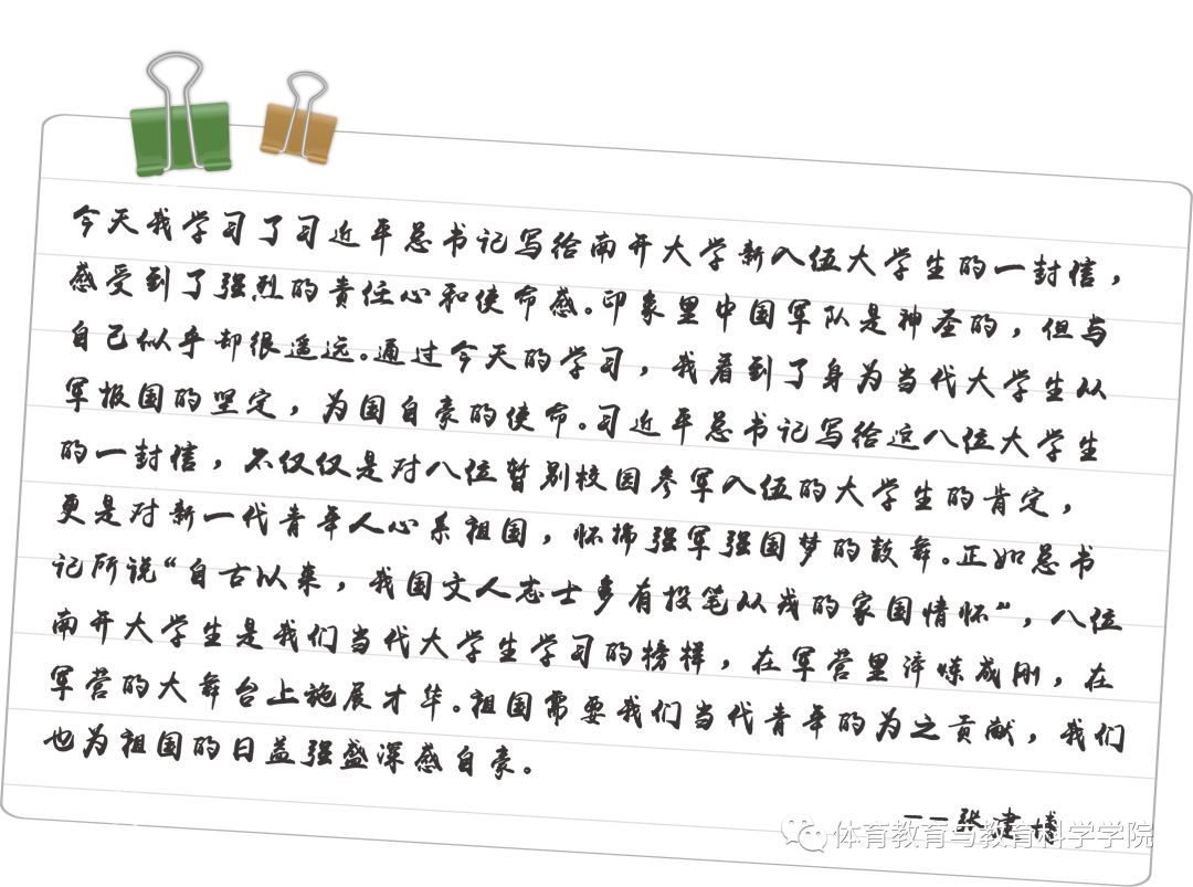 “同学们通过学习习总书记写给南开大学入伍的八位大学生的一封信,对军队有了更多的了解,看到自身的方向,而在体育教育与教育科学微密圈