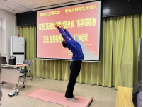 志愿者朱诗熠发挥相关专业特长为大家展示了瑜伽动作,分别是拜日式和舞王式,现场掌声连连。
