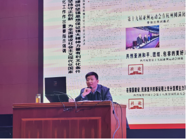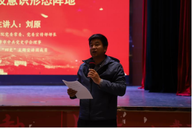 刘原部长分别从充分认识意识形态工作的极端重要作用、高校已成为意识形态工作的前沿阵地、新时代青年的历史使命三个方面为大家展开宣讲,用生动详实的案例、通俗易懂的语言让全体参会人员对意识形态工作的重要性有了更深的认识和新的理解。他激励同学们要以实现中华民族伟大复兴为己任,增强做中国人的志气、骨气、底气,不负时代,不负韶华,不负党和人民的殷切期望!