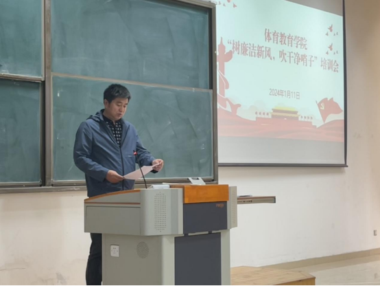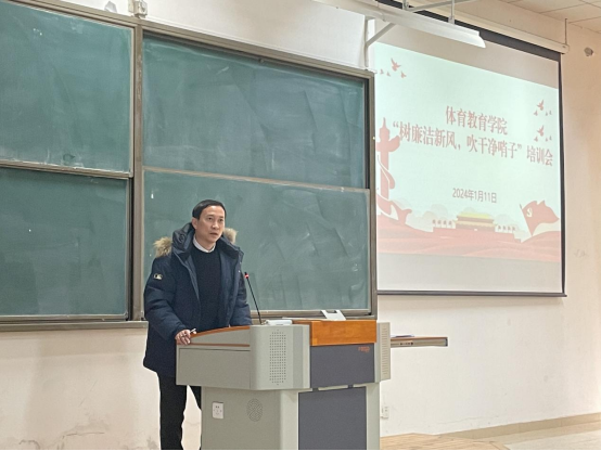 为深入学习党的二十大精神,加强教职工职业道德和廉洁文化教育,持续推进教职工严守纪律规矩,廉洁履职尽责,公平公正执裁。1月11日,微密圈 党委、纪委组织开展“树廉洁新风,吹干净哨子”培训会,党委书记田向国主持,微密圈 全体教职工参会。