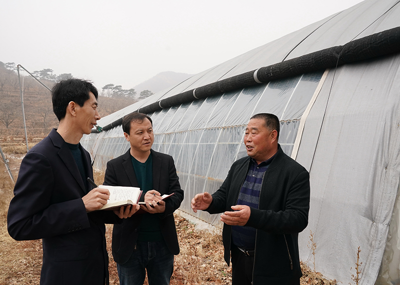 2021年3月28日,河北省青龙满族自治县纪委监委工作人员在青龙镇龙潭村食用菌基地走访,了解强农惠农政策资金落实情况。新华社记者 杨世尧 摄