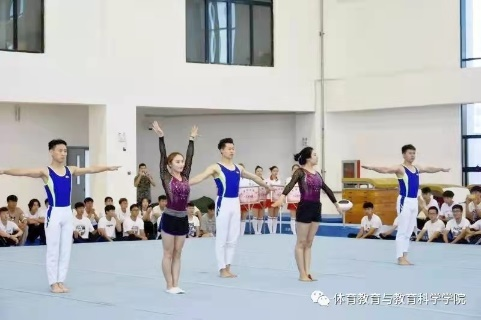 的支持下,由体操武术教研室组织举办的《体操》“课程思政”创新改革成果汇报展示暨体育教育专业学生技能提升竞赛,以“青春律动新时代,融道于术追梦人”为赛事主题,赛程分别以“榜样的力量”---青年教师展示体操技能,使学生具有学习的目标及前进的动力;“拼搏的舞台”---激发参赛学生在比赛中展现“相互理解、友谊长久、团结一致和公平竞争”的奥林匹克精神;“无上的荣耀”---在获奖学生颁奖的环节中激励学生要有勇攀高峰、挑战自我的意志品质。