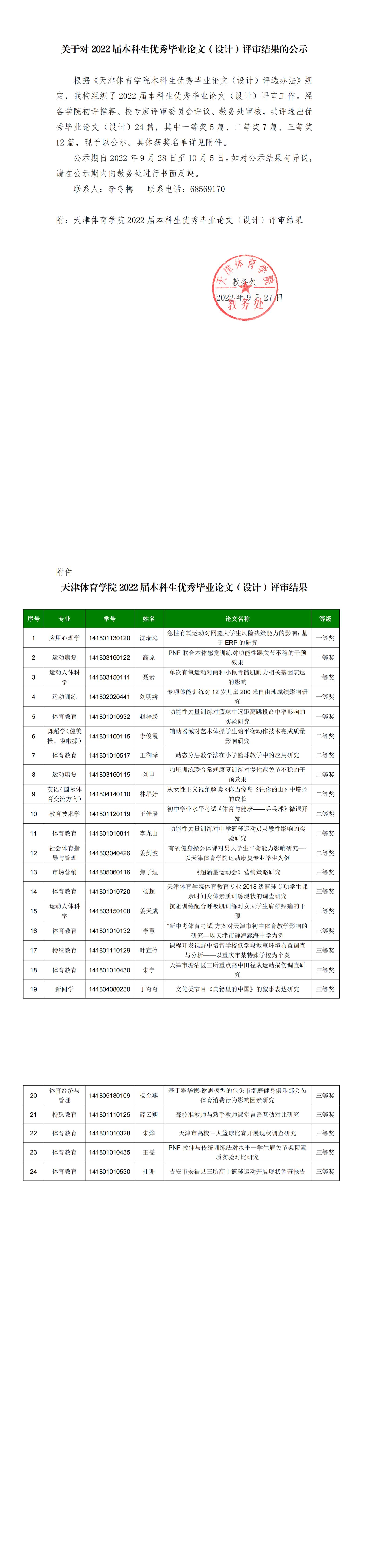 【荣誉表彰】关于对2022届本科生优秀毕业论文(设计)评审结果的公示